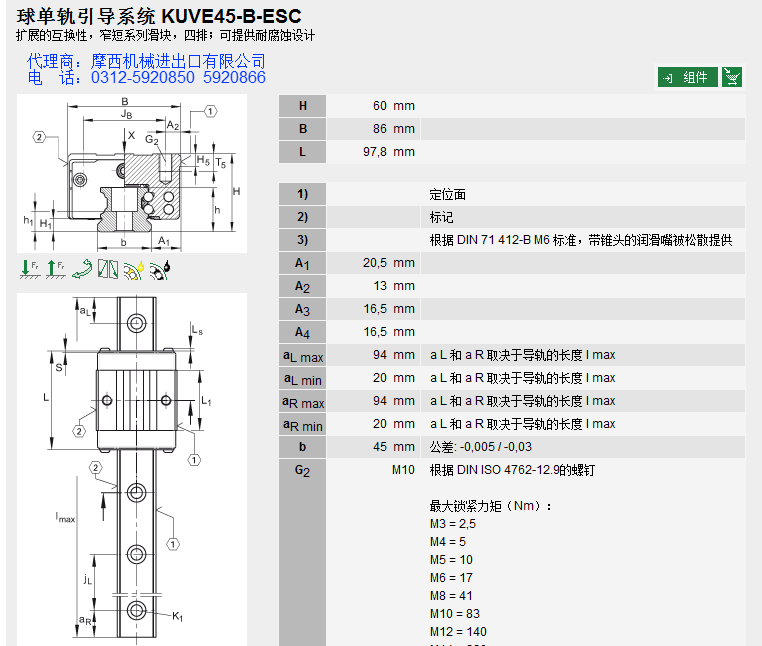 德国INA的球单轨INA KUVE45-B-EC INA KUVE145BEC系产品INA轴承、INA直线导轨、INA滑块。舍弗勒集团一直定位于高端产品的研发,INA产品始终处于业内领先地位,被广泛应用于:机床、印刷、包装、木工机械、立体装卸、起重机械、医药机械、拉伸机械、机器人、雕刻机械、装配机械、切割机械、等众多领域。 INA公司自1975年开始进入直线运动领域,INA制定了多种系列的产品,解决了在机械设计和制造等领域的问题。其主要产品有:INA直线导轨、INA滑块、INA直线轴承、INA伸缩导轨、INA抽屉式导向件、INA线性元件、INA线性滑轨、INA重负荷导向件、INA重负荷导轨等。