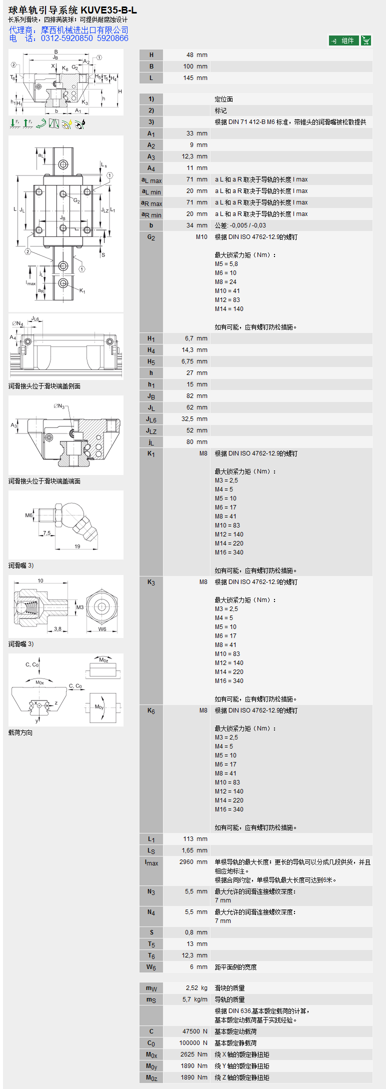 德国INA的球单轨INA KUVE35-B-L INA KUVE35BL系产品INA轴承、INA直线导轨、INA滑块。舍弗勒集团一直定位于高端产品的研发,INA产品始终处于业内领先地位,被广泛应用于:机床、印刷、包装、木工机械、立体装卸、起重机械、医药机械、拉伸机械、机器人、雕刻机械、装配机械、切割机械、等众多领域。 INA公司自1975年开始进入直线运动领域,INA制定了多种系列的产品,解决了在机械设计和制造等领域的问题。其主要产品有:INA直线导轨、INA滑块、INA直线轴承、INA伸缩导轨、INA抽屉式导向件、INA线性元件、INA线性滑轨、INA重负荷导向件、INA重负荷导轨等。
