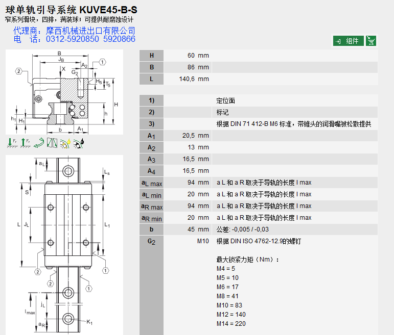 德国INA的球单轨INA KUVE45-B-SL INA KUVE45BSL系产品INA轴承、INA直线导轨、INA滑块。舍弗勒集团一直定位于高端产品的研发,INA产品始终处于业内领先地位,被广泛应用于:机床、印刷、包装、木工机械、立体装卸、起重机械、医药机械、拉伸机械、机器人、雕刻机械、装配机械、切割机械、等众多领域。 INA公司自1975年开始进入直线运动领域,INA制定了多种系列的产品,解决了在机械设计和制造等领域的问题。其主要产品有:INA直线导轨、INA滑块、INA直线轴承、INA伸缩导轨、INA抽屉式导向件、INA线性元件、INA线性滑轨、INA重负荷导向件、INA重负荷导轨等。