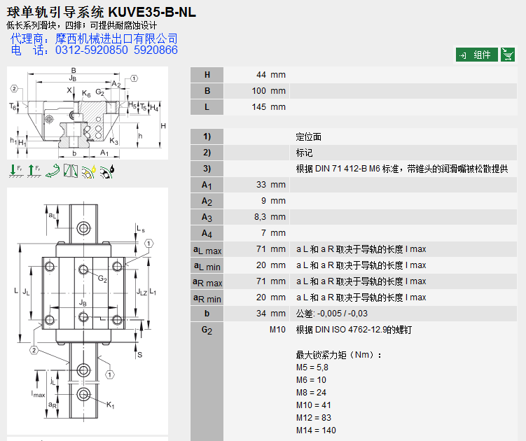 德国INA的球单轨INA KUVE30-B-NL INA KUVE30BNL系产品INA轴承、INA直线导轨、INA滑块。舍弗勒集团一直定位于高端产品的研发,INA产品始终处于业内领先地位,被广泛应用于:机床、印刷、包装、木工机械、立体装卸、起重机械、医药机械、拉伸机械、机器人、雕刻机械、装配机械、切割机械、等众多领域。 INA公司自1975年开始进入直线运动领域,INA制定了多种系列的产品,解决了在机械设计和制造等领域的问题。其主要产品有:INA直线导轨、INA滑块、INA直线轴承、INA伸缩导轨、INA抽屉式导向件、INA线性元件、INA线性滑轨、INA重负荷导向件、INA重负荷导轨等。