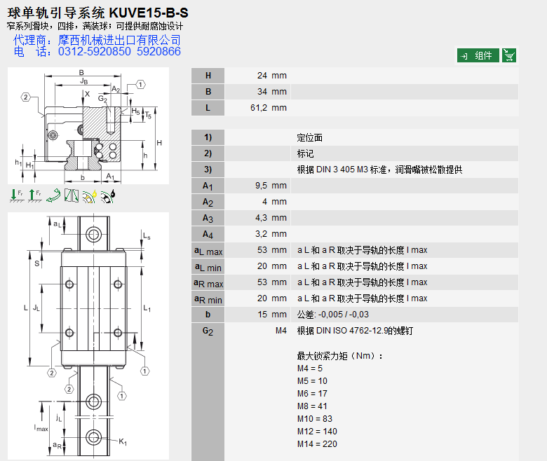 德国INA的球单轨INA KUVE15-B-S INA KUVE15BS系产品INA轴承、INA直线导轨、INA滑块。舍弗勒集团一直定位于高端产品的研发,INA产品始终处于业内领先地位,被广泛应用于:机床、印刷、包装、木工机械、立体装卸、起重机械、医药机械、拉伸机械、机器人、雕刻机械、装配机械、切割机械、等众多领域。 INA公司自1975年开始进入直线运动领域,INA制定了多种系列的产品,解决了在机械设计和制造等领域的问题。其主要产品有:INA直线导轨、INA滑块、INA直线轴承、INA伸缩导轨、INA抽屉式导向件、INA线性元件、INA线性滑轨、INA重负荷导向件、INA重负荷导轨等。