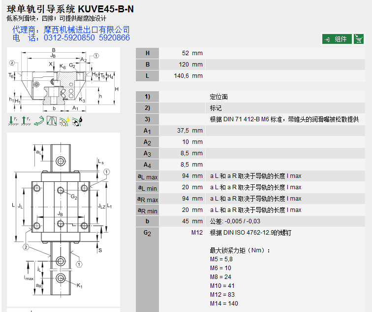 德国INA的球单轨INA KUVE45-B-N INA KUVE45BN系产品INA轴承、INA直线导轨、INA滑块。舍弗勒集团一直定位于高端产品的研发,INA产品始终处于业内领先地位,被广泛应用于:机床、印刷、包装、木工机械、立体装卸、起重机械、医药机械、拉伸机械、机器人、雕刻机械、装配机械、切割机械、等众多领域。 INA公司自1975年开始进入直线运动领域,INA制定了多种系列的产品,解决了在机械设计和制造等领域的问题。其主要产品有:INA直线导轨、INA滑块、INA直线轴承、INA伸缩导轨、INA抽屉式导向件、INA线性元件、INA线性滑轨、INA重负荷导向件、INA重负荷导轨等。