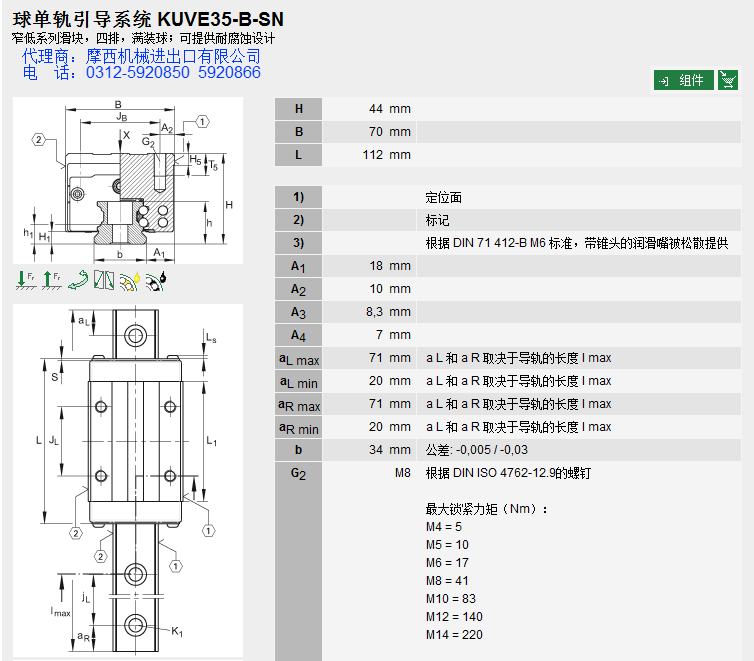 德国INA的球单轨INA KUVE35-B-SN INA KUVE35BSN系产品INA轴承、INA直线导轨、INA滑块。舍弗勒集团一直定位于高端产品的研发,INA产品始终处于业内领先地位,被广泛应用于:机床、印刷、包装、木工机械、立体装卸、起重机械、医药机械、拉伸机械、机器人、雕刻机械、装配机械、切割机械、等众多领域。 INA公司自1975年开始进入直线运动领域,INA制定了多种系列的产品,解决了在机械设计和制造等领域的问题。其主要产品有:INA直线导轨、INA滑块、INA直线轴承、INA伸缩导轨、INA抽屉式导向件、INA线性元件、INA线性滑轨、INA重负荷导向件、INA重负荷导轨等。