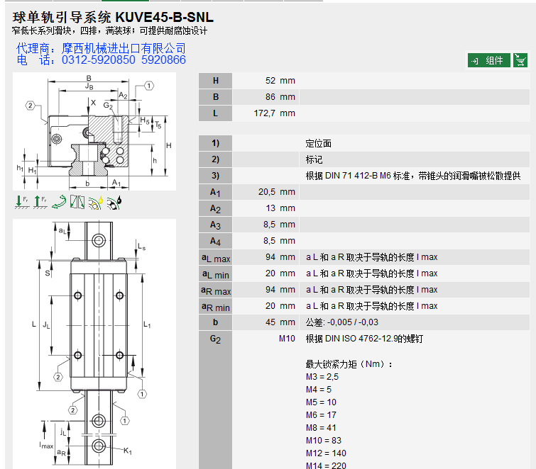 德国INA的球单轨INA KUVE45-B-SNL INA KUVE45BSNL系产品INA轴承、INA直线导轨、INA滑块。舍弗勒集团一直定位于高端产品的研发,INA产品始终处于业内领先地位,被广泛应用于:机床、印刷、包装、木工机械、立体装卸、起重机械、医药机械、拉伸机械、机器人、雕刻机械、装配机械、切割机械、等众多领域。 INA公司自1975年开始进入直线运动领域,INA制定了多种系列的产品,解决了在机械设计和制造等领域的问题。其主要产品有:INA直线导轨、INA滑块、INA直线轴承、INA伸缩导轨、INA抽屉式导向件、INA线性元件、INA线性滑轨、INA重负荷导向件、INA重负荷导轨等。