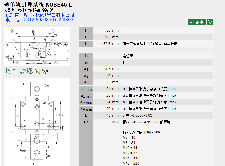 德国INA的球单轨INA KUSE45-HL INA KUSE45HL系产品INA轴承、INA直线导轨、INA滑块。舍弗勒集团一直定位于高端产品的研发,INA产品始终处于业内领先地位,被广泛应用于:机床、印刷、包装、木工机械、立体装卸、起重机械、医药机械、拉伸机械、机器人、雕刻机械、装配机械、切割机械、等众多领域。 INA公司自1975年开始进入直线运动领域,INA制定了多种系列的产品,解决了在机械设计和制造等领域的问题。其主要产品有:INA直线导轨、INA滑块、INA直线轴承、INA伸缩导轨、INA抽屉式导向件、INA线性元件、INA线性滑轨、INA重负荷导向件、INA重负荷导轨等。