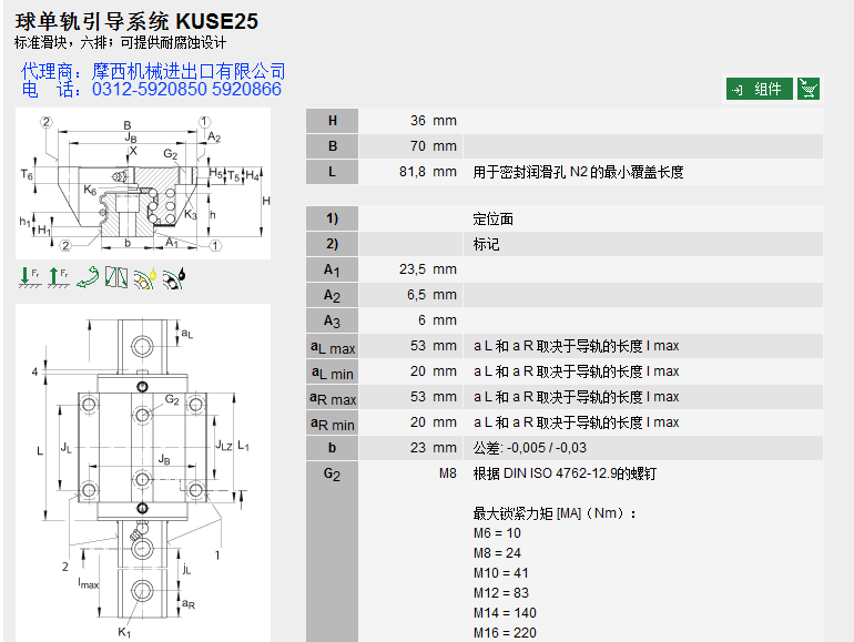 德国INA的球单轨INA KUSE25系产品INA轴承、INA直线导轨、INA滑块。舍弗勒集团一直定位于高端产品的研发,INA产品始终处于业内领先地位,被广泛应用于:机床、印刷、包装、木工机械、立体装卸、起重机械、医药机械、拉伸机械、机器人、雕刻机械、装配机械、切割机械、等众多领域。 INA公司自1975年开始进入直线运动领域,INA制定了多种系列的产品,解决了在机械设计和制造等领域的问题。其主要产品有:INA直线导轨、INA滑块、INA直线轴承、INA伸缩导轨、INA抽屉式导向件、INA线性元件、INA线性滑轨、INA重负荷导向件、INA重负荷导轨等。