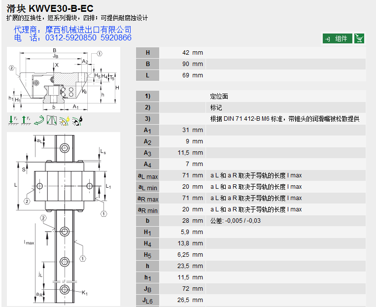 德国INA的球单轨INA KWVE30-B-EC系产品INA轴承、INA直线导轨、INA滑块。舍弗勒集团一直定位于高端产品的研发,INA产品始终处于业内领先地位,被广泛应用于:机床、印刷、包装、木工机械、立体装卸、起重机械、医药机械、拉伸机械、机器人、雕刻机械、装配机械、切割机械、等众多领域。 INA公司自1975年开始进入直线运动领域,INA制定了多种系列的产品,解决了在机械设计和制造等领域的问题。其主要产品有:INA直线导轨、INA滑块、INA直线轴承、INA伸缩导轨、INA抽屉式导向件、INA线性元件、INA线性滑轨、INA重负荷导向件、INA重负荷导轨等。