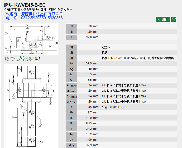德国INA的球单轨INA KWVE45-B-EC系产品INA轴承、INA直线导轨、INA滑块。舍弗勒集团一直定位于高端产品的研发,INA产品始终处于业内领先地位,被广泛应用于:机床、印刷、包装、木工机械、立体装卸、起重机械、医药机械、拉伸机械、机器人、雕刻机械、装配机械、切割机械、等众多领域。 INA公司自1975年开始进入直线运动领域,INA制定了多种系列的产品,解决了在机械设计和制造等领域的问题。其主要产品有:INA直线导轨、INA滑块、INA直线轴承、INA伸缩导轨、INA抽屉式导向件、INA线性元件、INA线性滑轨、INA重负荷导向件、INA重负荷导轨等。