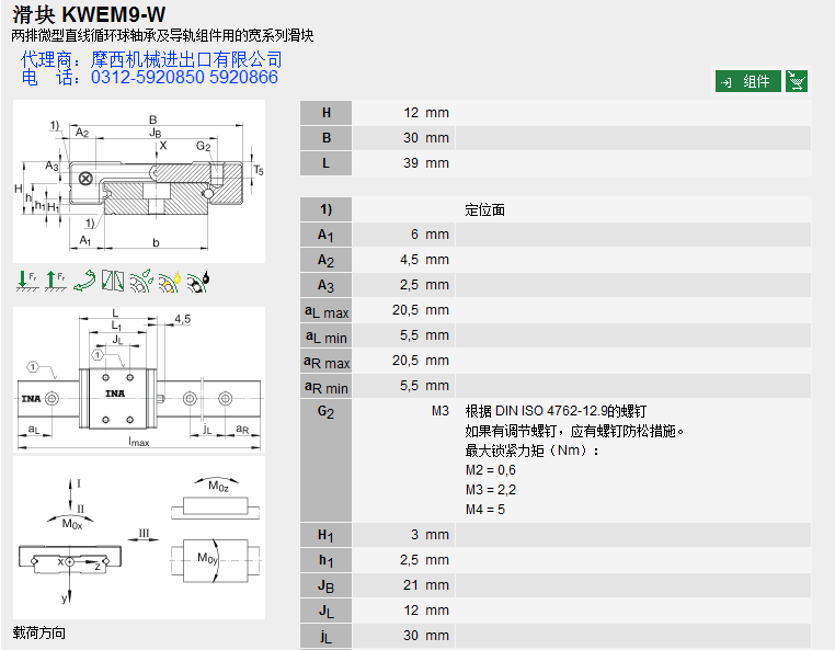 德国INA的球单轨INA KWEM9-W系产品INA轴承、INA直线导轨、INA滑块。舍弗勒集团一直定位于高端产品的研发,INA产品始终处于业内领先地位,被广泛应用于:机床、印刷、包装、木工机械、立体装卸、起重机械、医药机械、拉伸机械、机器人、雕刻机械、装配机械、切割机械、等众多领域。 INA公司自1975年开始进入直线运动领域,INA制定了多种系列的产品,解决了在机械设计和制造等领域的问题。其主要产品有:INA直线导轨、INA滑块、INA直线轴承、INA伸缩导轨、INA抽屉式导向件、INA线性元件、INA线性滑轨、INA重负荷导向件、INA重负荷导轨等。