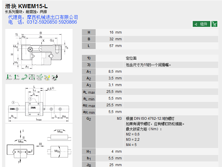 德国INA的球单轨INA KWEM15-L系产品INA轴承、INA直线导轨、INA滑块。舍弗勒集团一直定位于高端产品的研发,INA产品始终处于业内领先地位,被广泛应用于:机床、印刷、包装、木工机械、立体装卸、起重机械、医药机械、拉伸机械、机器人、雕刻机械、装配机械、切割机械、等众多领域。 INA公司自1975年开始进入直线运动领域,INA制定了多种系列的产品,解决了在机械设计和制造等领域的问题。其主要产品有:INA直线导轨、INA滑块、INA直线轴承、INA伸缩导轨、INA抽屉式导向件、INA线性元件、INA线性滑轨、INA重负荷导向件、INA重负荷导轨等。