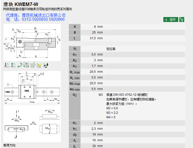 德国INA的球单轨INA KWEM7-W系产品INA轴承、INA直线导轨、INA滑块。舍弗勒集团一直定位于高端产品的研发,INA产品始终处于业内领先地位,被广泛应用于:机床、印刷、包装、木工机械、立体装卸、起重机械、医药机械、拉伸机械、机器人、雕刻机械、装配机械、切割机械、等众多领域。 INA公司自1975年开始进入直线运动领域,INA制定了多种系列的产品,解决了在机械设计和制造等领域的问题。其主要产品有:INA直线导轨、INA滑块、INA直线轴承、INA伸缩导轨、INA抽屉式导向件、INA线性元件、INA线性滑轨、INA重负荷导向件、INA重负荷导轨等。
