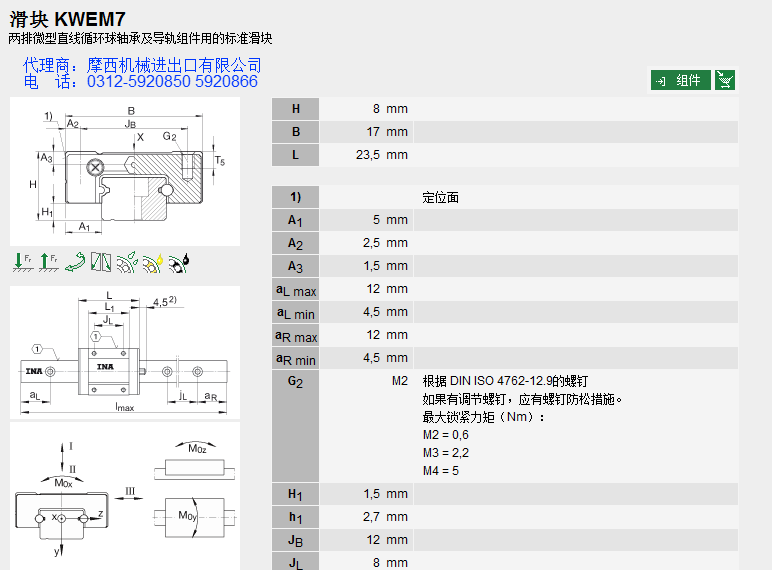 德国INA的球单轨INA KWEM7系产品INA轴承、INA直线导轨、INA滑块。舍弗勒集团一直定位于高端产品的研发,INA产品始终处于业内领先地位,被广泛应用于:机床、印刷、包装、木工机械、立体装卸、起重机械、医药机械、拉伸机械、机器人、雕刻机械、装配机械、切割机械、等众多领域。 INA公司自1975年开始进入直线运动领域,INA制定了多种系列的产品,解决了在机械设计和制造等领域的问题。其主要产品有:INA直线导轨、INA滑块、INA直线轴承、INA伸缩导轨、INA抽屉式导向件、INA线性元件、INA线性滑轨、INA重负荷导向件、INA重负荷导轨等。