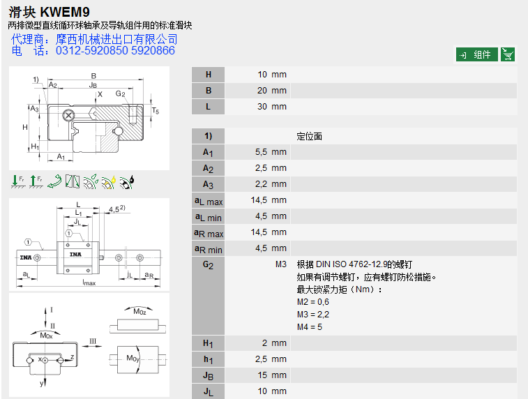 德国INA的球单轨INA KWEM9系产品INA轴承、INA直线导轨、INA滑块。舍弗勒集团一直定位于高端产品的研发,INA产品始终处于业内领先地位,被广泛应用于:机床、印刷、包装、木工机械、立体装卸、起重机械、医药机械、拉伸机械、机器人、雕刻机械、装配机械、切割机械、等众多领域。 INA公司自1975年开始进入直线运动领域,INA制定了多种系列的产品,解决了在机械设计和制造等领域的问题。其主要产品有:INA直线导轨、INA滑块、INA直线轴承、INA伸缩导轨、INA抽屉式导向件、INA线性元件、INA线性滑轨、INA重负荷导向件、INA重负荷导轨等。