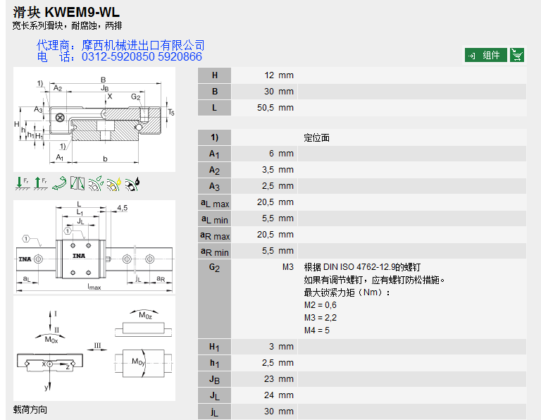 德国INA的球单轨INA KWEM9-WL系产品INA轴承、INA直线导轨、INA滑块。舍弗勒集团一直定位于高端产品的研发,INA产品始终处于业内领先地位,被广泛应用于:机床、印刷、包装、木工机械、立体装卸、起重机械、医药机械、拉伸机械、机器人、雕刻机械、装配机械、切割机械、等众多领域。 INA公司自1975年开始进入直线运动领域,INA制定了多种系列的产品,解决了在机械设计和制造等领域的问题。其主要产品有:INA直线导轨、INA滑块、INA直线轴承、INA伸缩导轨、INA抽屉式导向件、INA线性元件、INA线性滑轨、INA重负荷导向件、INA重负荷导轨等。
